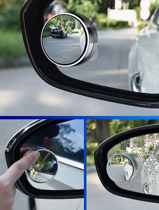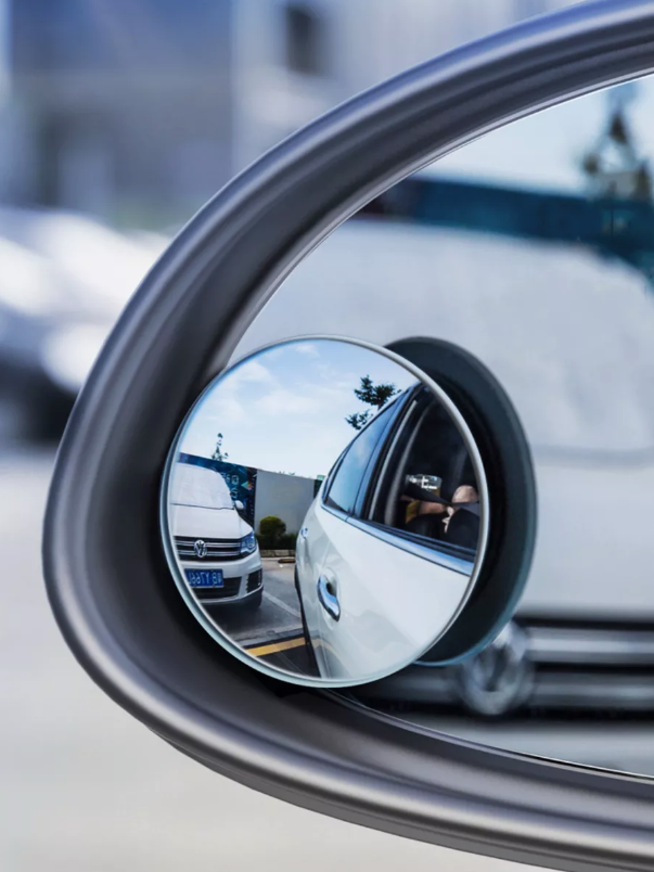 Ці круглі панорамні дзеркала легко кріпляться до бокових дзеркал автомобіля за допомогою клейкої основи.