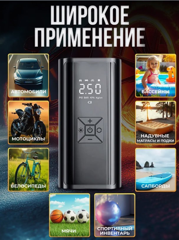 🔋 Потужний бездротовий компресор 6000 мА·г