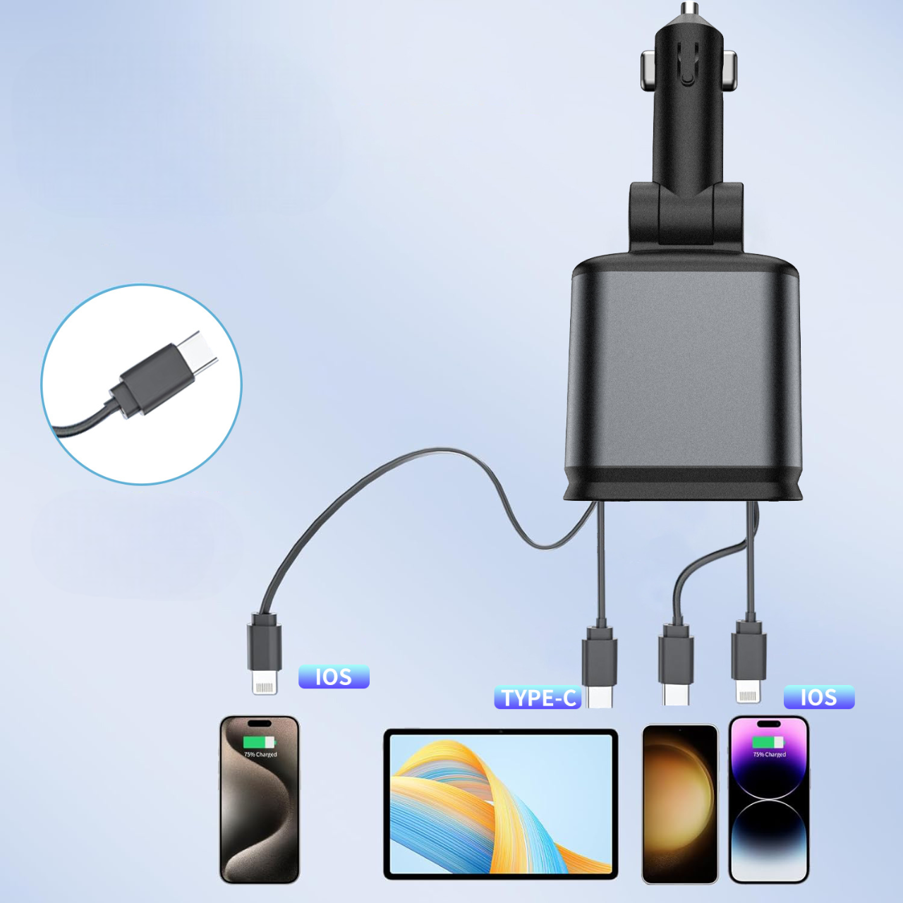 ✅ Зручність для водія та пасажирів – заряджайте кілька пристроїв одночасно, без черг і незручностей.