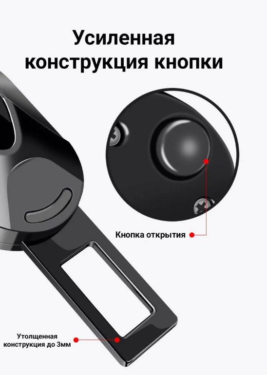Простота встановлення: легко вставляється у гніздо ременя безпеки та надійно фіксується без необхідності у додаткових інструментах чи спеціальних знаннях.