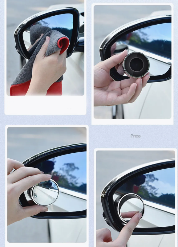 Ці круглі панорамні дзеркала легко кріпляться до бокових дзеркал автомобіля за допомогою клейкої основи.