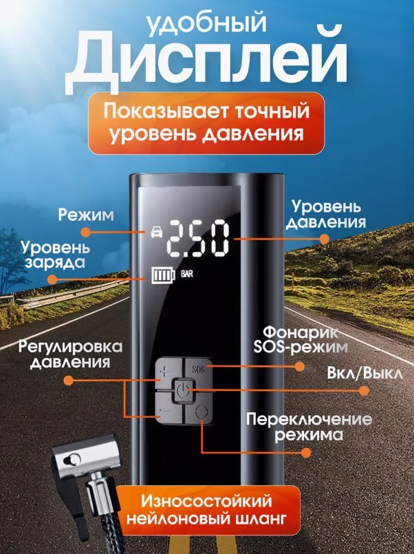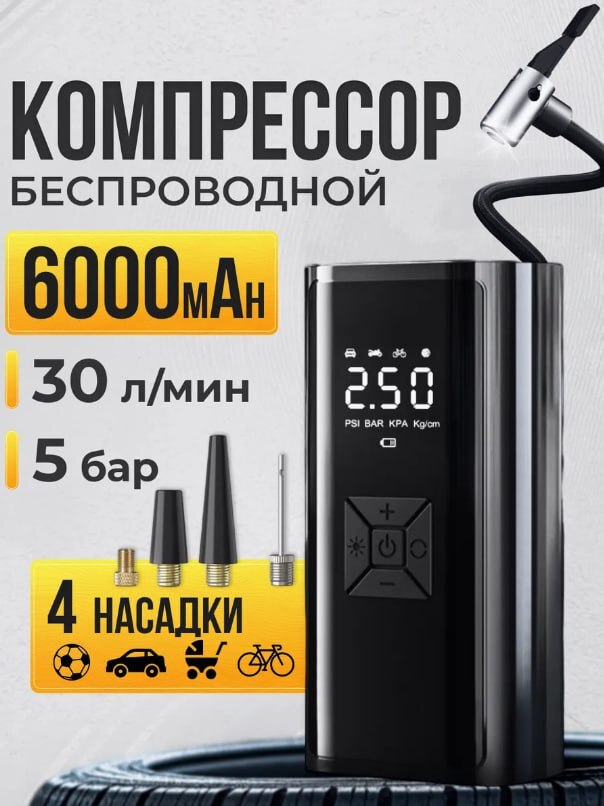 🔋 Потужний бездротовий компресор 6000 мА·г