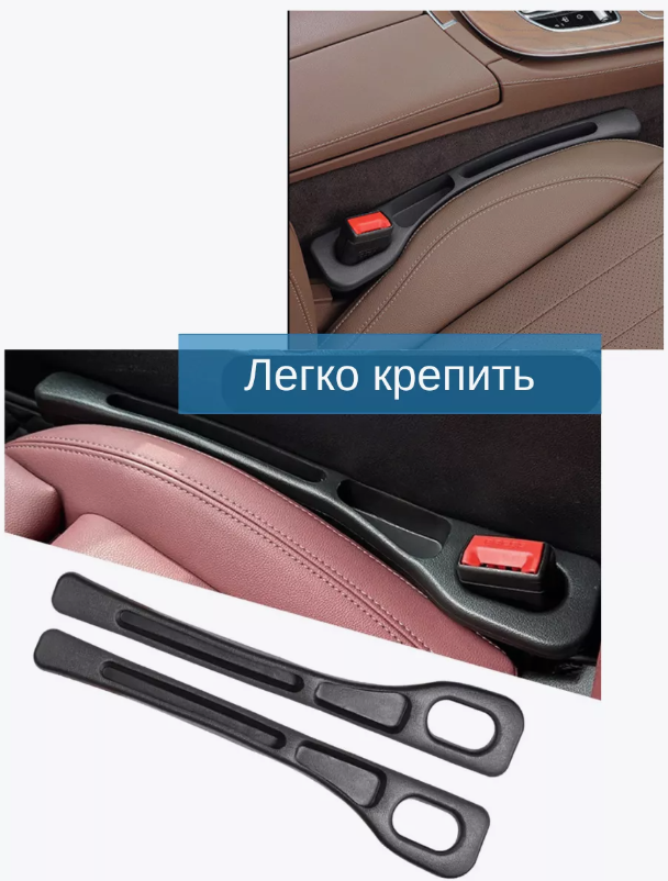 Ущільнювач-заглушка легко встановлюється в простір між сидінням і центральною консоллю, запобігаючи падінню ключів, монет, карток, смартфонів та інших дрібниць у важкодоступні місця